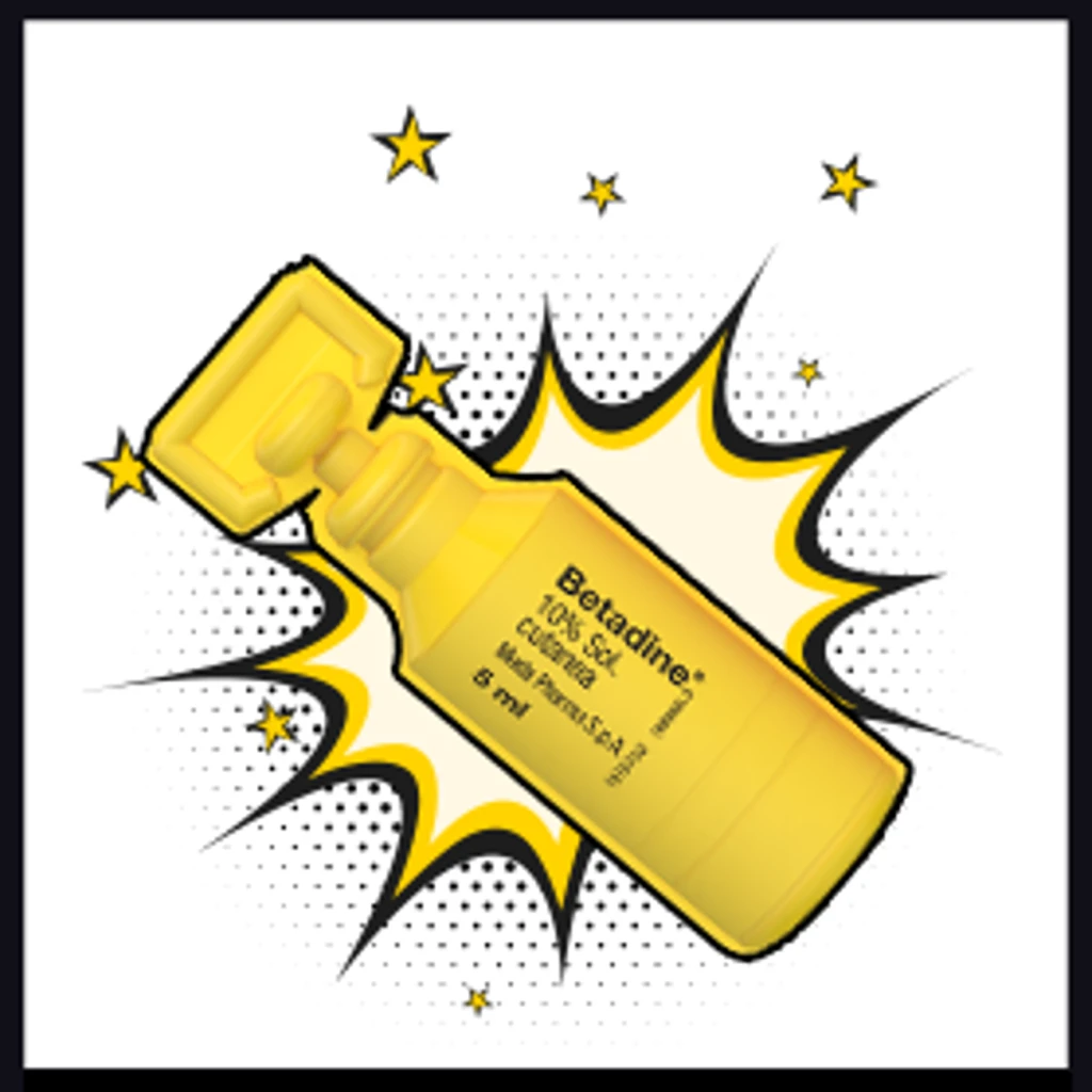 Betadine Gel, Betadine Soluzione Cutanea, Betadine Garze Impregnate, sono medicinali a base di Iodopovidone. Sono medicinali che possono avere effetti indesiderati anche gravi. Non somministrare ai bambini al di sotto dei 2 anni di età. Prima dell‛uso leggere attentamente il foglio illustrativo. Betadine Collutorio è un medicinale a base di Iodopovidone. È un medicinale che può avere effetti indesiderati anche gravi. Non somministrare ai bambini al di sotto dei 6 anni di età. Prima dell‛uso leggere attentamente il foglio illustrativo. Betadine soluzione vaginale è un medicinale a base di Iodopovidone. È un medicinale che può avere effetti indesiderati anche gravi. Prima dell‛uso leggere attentamente il foglio illustrativo. Betadine compresse vaginali è un medicinale a base di Iodopovidone, è un medicinale senza obbligo di prescrizione (SOP) che può essere consegnato solo dal farmacista. Ascolta il tuo farmacista. Aut. Min. del 16/02/2026. MAT-BET-00262