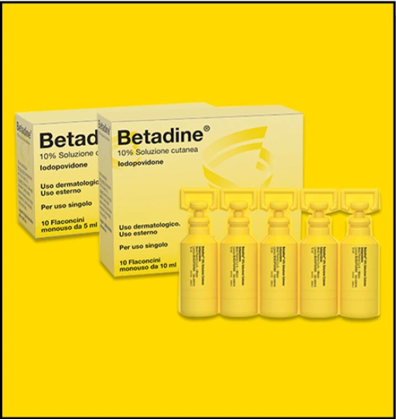 Betadine® 10% Soluzione Cutanea contiene Iodopovidone, un disinfettante per uso locale. E’ indicato per disinfettare la pelle lesa (ferite, piaghe) degli adulti e dei bambini di età superiore a 2 anni.